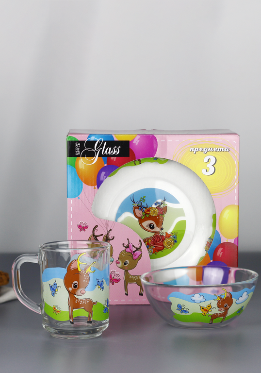 Набор посуды для завтрака состоит из трех предметов: