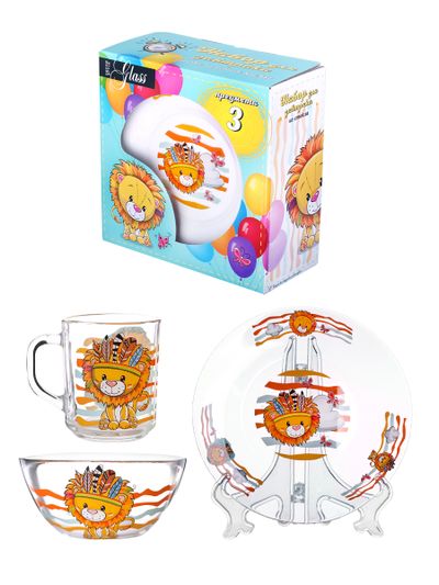 Набор посуды для завтрака состоит из трех предметов (кружка 250 мл, тарелка 19,5 см в диаметре и салатник 13 см в диаметре), каждый из которых имеет красочный декор. Изображение на посуде не боится посудомоечной машины, так как нанесение произведено под воздействием высокой температуры.